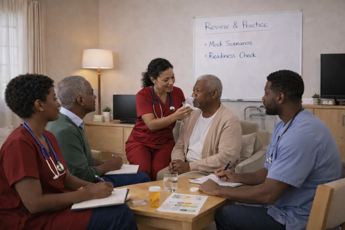 Reinforce everything learned through guided practice, scenario-based review, and caregiver readiness preparation for real-world home care settings.