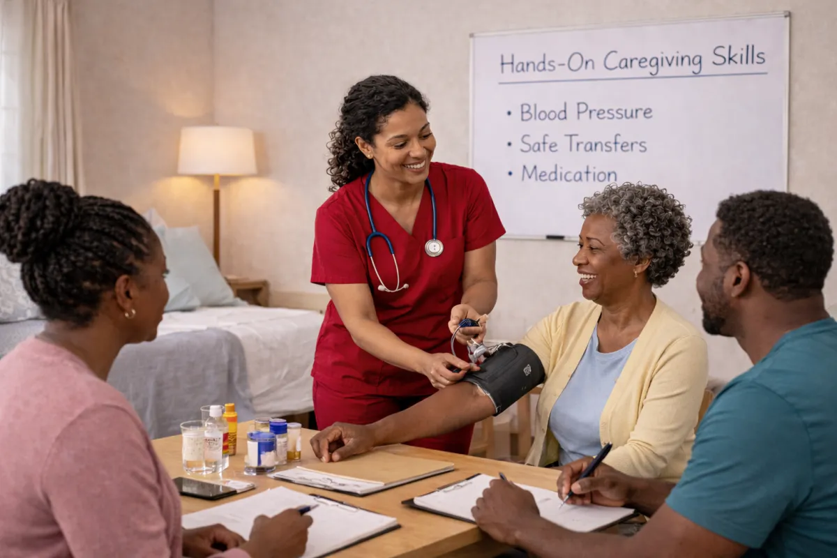 Through practical instruction and compassionate guidance, caregivers learn skills that reduce stress, improve safety, and strengthen family care routines.